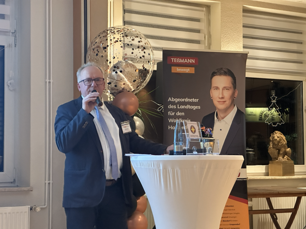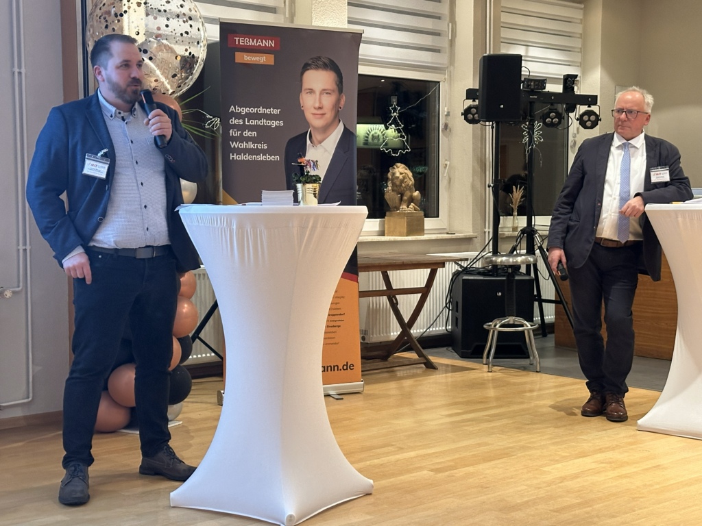 Den fachlichen Auftakt machte Marc Melzer von der Investitionsbank Sachsen-Anhalt. Er informierte die Anwesenden umfassend über das „Sondervermögen Infrastruktur“. Melzer legte dar, welche Fördermöglichkeiten und finanziellen Rahmenbedingungen aktuell zur Verfügung stehen, um die infrastrukturelle Basis der Region zu stärken. Für viele Unternehmer war dies ein wertvoller Einblick, wie Investitionen durch Landesmittel flankiert werden können, um den Standort Börde attraktiv zu halten.